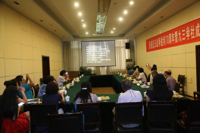 座谈会上,首先邀请江苏师范大学原文学院副院长、九三学社江苏省委社会主义理论研究院研究员于盛庭教授做了“学社史、知九三、爱九三”的专题报告。于盛庭教授分别从九三学社的缘起、成立背景、发展历程、创始人、社名含义、重要活动等多方面进行了详细解读。接着,大家集体观看了由九三学社中央专门制作的社史宣传专题片《为了民主与科学之-激流勇聚》。
