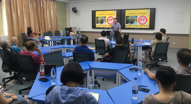 座谈会首先由胡可涛老师为各位社员同志做了题为“五四精神与九三学社的缘起”的报告。胡可涛老师现为中国矿业大学马克思主义学院副教授,硕士生导师。2009年毕业于清华大学哲学系。曾以访问学者身份于2012年,2014年,2018年分别赴香港中文大学,台湾政治大学,辅仁大学从事研究工作。早期主要以先秦哲学研究为主,近年来逐步转向中国近现代哲学研究。已出版专著1部,学术论文40余篇。在本次报告中,胡可涛老师不仅分析了五四运动爆发前后的时局情况,讲述了在五四运动中,以许德珩、潘菽等为代表的一大批九三学社先贤冒着随时牺牲的危险践行民主科学精神的事迹,还带大家重温了九三学社从开始筹备到正式成立的整个历史过程。