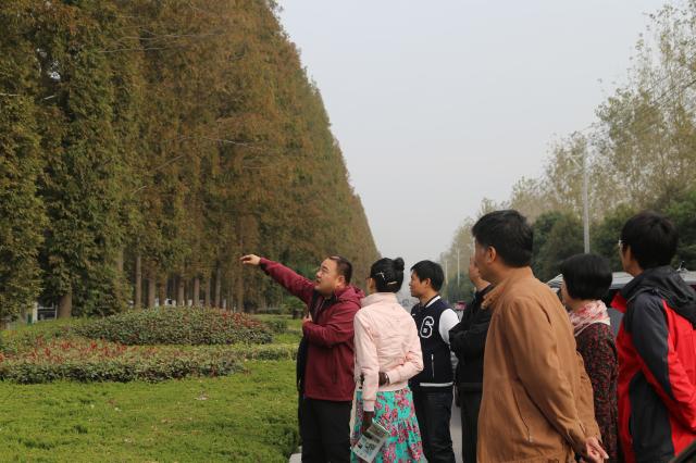 大家首先参观了位于邳州市铁富镇姚庄村邳州万亩银杏林,秋天的银杏林,满园金甲,美轮美奂。漫步在3千米的道路铺满了金黄,漫步其中,恍若进入童话世界中的时光隧道;登上了港上镇齐村观景台上极目远眺,绵延不尽的银杏林,星罗棋布的银杏种植基地,绘成了独具特色的锦绣画卷;欣赏了在观景台旁占地500亩的古银杏姊妹园。真可谓一步一景,一景一画,步移景动,景动画变,满目翠绿入画来。