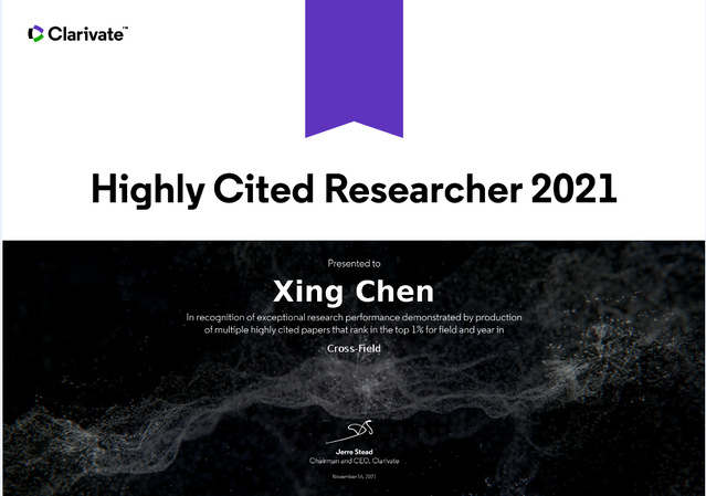 英国伦敦时间11月16日,科睿唯安(Clarivate Analytics)公布了2021年度“全球高被引科学家榜单” (Highly Cited Researchers 2021),来自全球70多个国家和地区的6602人入选高被引科学家名单,其中哈佛大学共有214人次上榜,是全球高被引科学家人数最多的机构,中国内地本年度共有935人次(占比14.2%)上榜。民盟矿大委员会副主委陈兴教授继2019和2020年在交叉学科和生物与生化领域入围之后,今年在交叉学科领域再次入围“全球高被引科学家榜单”(中国矿业大学今年唯一入选榜单者)。陈兴教授之前也入围了中国高被引学者和斯坦福大学发布的“世界前2%科学家榜单”。