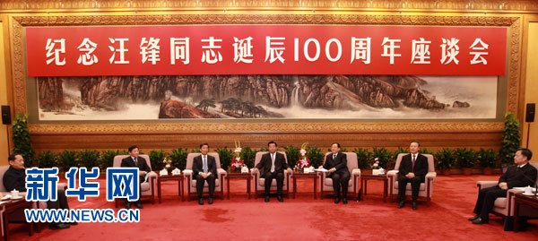 12月16日,纪念汪锋同志诞辰100周年座谈会在北京人民大会堂举行,中共中央政治局常委、全国政协主席贾庆林出席座谈会。中共中央政治局委员、全国政协副主席王刚主持会议,中共中央政治局委员、中央书记处书记、中央组织部部长李源潮出席座谈会。新华社记者庞兴雷 摄