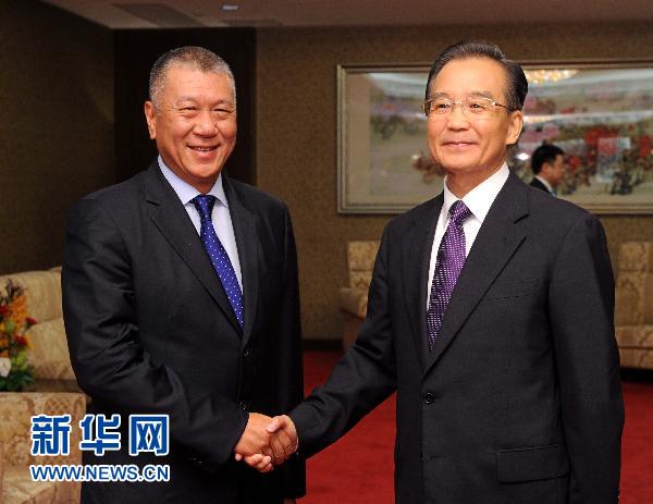 11月13日,国务院总理温家宝在澳门新竹苑宾馆会见全国政协副主席何厚铧。新华社记者饶爱民摄