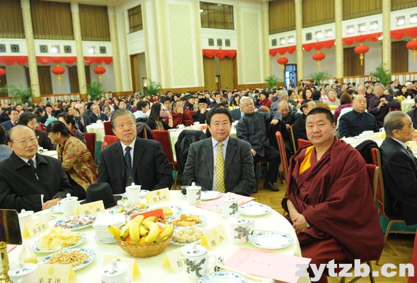 2月3日上午,中共中央统战部、全国人大民族委员会、国家民族事务委员会、全国政协民族和宗教委员会、北京市人民政府在人民大会堂举行首都各民族人士迎春茶话会。