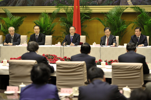 政府参事制度的建立,是毛泽东、周恩来等老一辈革命家高瞻远瞩作出的政治决策,是将党的统一战线理论运用于政权建设的伟大创举。60年来,广大政府参事以对国家和人民崇高的责任感和使命感,认真履行职责,深入调查研究,谋善举、献良策,为共和国的建设和发展作出了宝贵贡献。半个多世纪以来,参事们呕心沥血、卓有成效的工作,党和政府是满意的,人民是不会忘记的。我代表党中央、国务院,向历届政府参事表示衷心的感谢和崇高的敬意!向在座的各位中央文史研究馆馆员表示诚挚的问候!向全国政府参事室机关工作人员表示亲切的慰问!