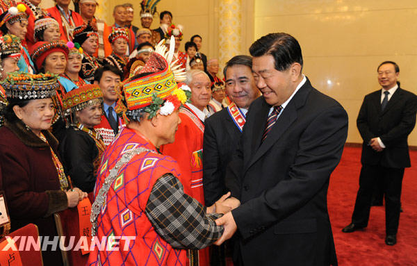 12月21日,中共中央政治局常委、全国政协主席贾庆林在北京人民大会堂会见台湾少数民族代表人士访问团一行。