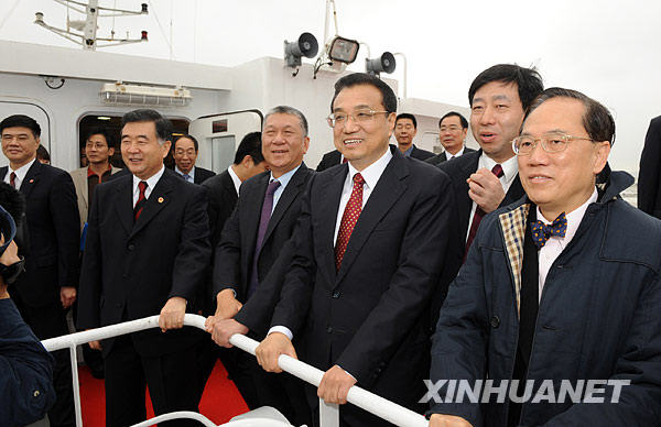 12月15日,中共中央政治局常委、国务院副总理李克强在珠海出席港珠澳大桥开工仪式并宣布工程开工。这是李克强在开工仪式结束后乘船前往海上施工现场考察。