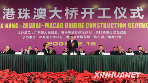 12月15日,中共中央政治局常委、国务院副总理李克强在珠海出席港珠澳大桥开工仪式并宣布工程开工。