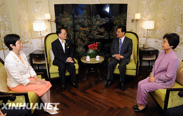 11月14日,中国国家主席胡锦涛和夫人刘永清在新加坡会见前来出席亚太经合组织第十七次领导人非正式会议的香港特别行政区行政长官曾荫权和夫人曾鲍笑薇。