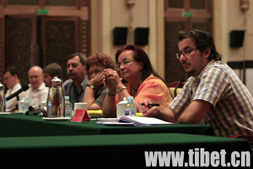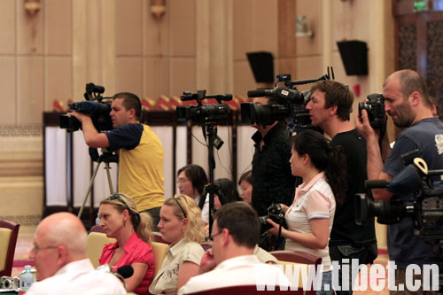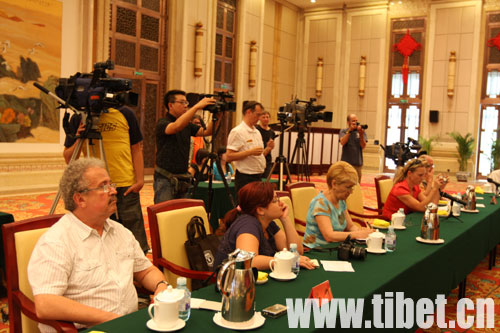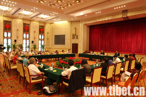 朱维群:达赖喇嘛多年用于欺骗世人、争取政治上的主动,一个主要的做法就是把自己装扮成西藏的“民族、文化、宗教”的代言人。但是我们(不光是中国共产党和中国政府,而且包括西藏各族人民)不这样看这个问题。我们同达赖的分歧,不是什么民族问题、文化和宗教问题,而是中国是分裂还是统一,西藏是动乱还是稳定的问题。中华民族是由56个民族组成的,藏族文化是我们中华民族文化的组成部分,每一个民族的文化都是我们13亿人的共同的宝贵财富,都受到珍惜和保护。我们中国拥有5大宗教,其中佛教当中包括了藏传佛教,西藏的宗教和其他宗教一样在我们这里受法律保护。我们中央政府和西藏自治区人民政府,为了保护西藏的文化、宗教,这些年做了大量的工作,这里我就不一一列举了。朋友们将去青海,同样可以看到我们在保护藏族的文化和宗教信仰方面做了哪些工作。我们和达赖集团矛盾的焦点在于他们千方百计否认西藏自古就是中国的一部分,而我们坚持西藏从历史上一直到现在从来就是中国的一部分;达赖集团千方百计搞乱西藏,特别是去年“3・14”以来,达赖集团在搞乱西藏、破坏奥运会方面做了哪些事情,全世界有目共睹,而我们则是要维护西藏的稳定,维护西藏各族人民的根本利益。