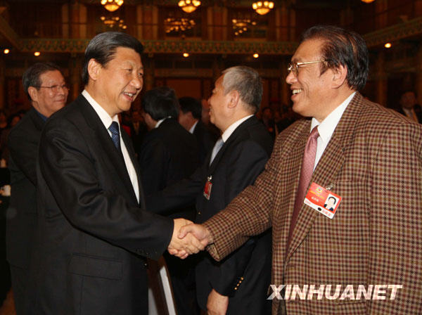 3月4日,中共中央政治局常委、国家副主席习近平看望出席全国政协十一届二次会议港澳地区全国政协委员并参加联组讨论。