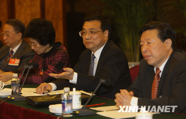 3月4日,中共中央政治局常委、国务院副总理李克强看望出席全国政协十一届二次会议教育界委员并参加联组讨论。