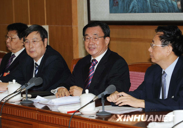 3月4日,中共中央政治局常委、中央政法委书记周永康看望出席全国政协十一届二次会议特邀界委员并参加联组讨论。