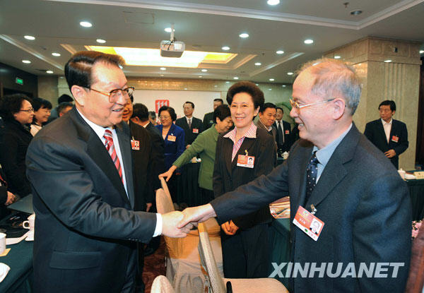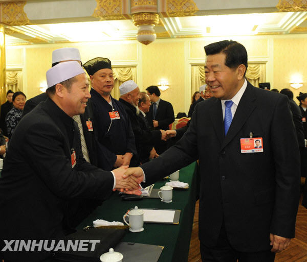 3月4日,中共中央政治局常委、全国政协主席贾庆林看望出席全国政协十一届二次会议宗教界委员并参加小组讨论。