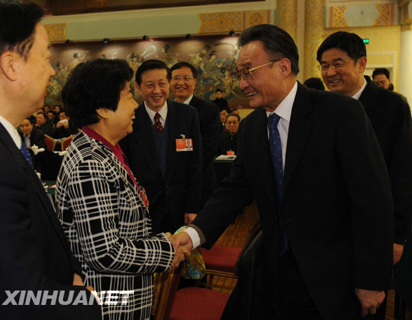 3月4日,中共中央政治局常委、全国人大常委会委员长吴邦国看望出席全国政协十一届二次会议中共界委员并参加联组讨论。