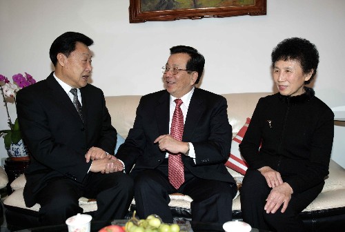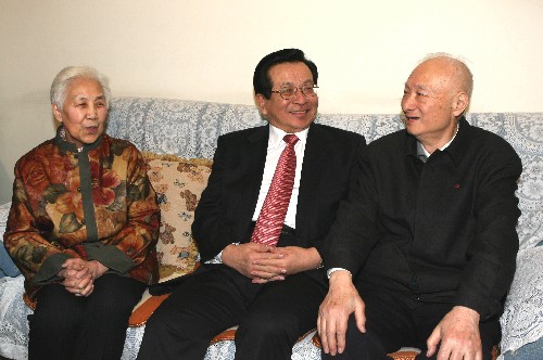 1月26日,中共中央政治局常委、国家副主席曾庆红在和国家最高科技奖获得者王永志亲切交谈。 当日,中共中央政治局常委、国家副主席曾庆红登门看望了农业科技专家卢良恕、国家最高科技奖获得者王永志和北京生命科学研究所所长王晓东,向他们致以亲切的慰问和节日的祝福,并认真听取他们对提高自主创新能力、建设创新型国家的建议。他希望广大科技工作者积极响应党中央的号召,在建设创新型国家中继续创造无愧于时代、无愧于人民的光辉业绩。 新华社记者饶爱民摄