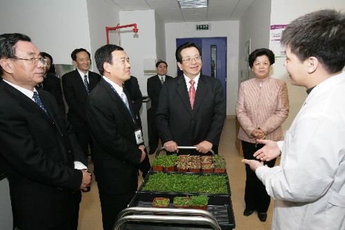 1月26日,中共中央政治局常委、国家副主席曾庆红在王晓东(左二)陪同下,在北京生命科学研究所实验室了解科研进展情况。 当日,中共中央政治局常委、国家副主席曾庆红登门看望了农业科技专家卢良恕、国家最高科技奖获得者王永志和北京生命科学研究所所长王晓东,向他们致以亲切的慰问和节日的祝福,并认真听取他们对提高自主创新能力、建设创新型国家的建议。他希望广大科技工作者积极响应党中央的号召,在建设创新型国家中继续创造无愧于时代、无愧于人民的光辉业绩。 新华社记者樊如钧摄