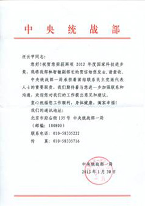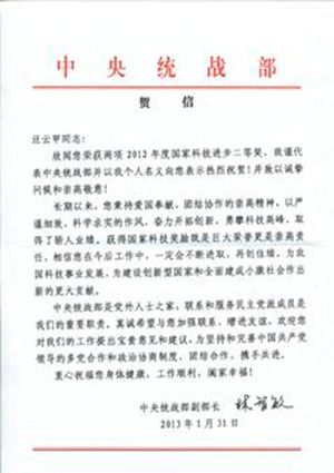 日前,中央统战部副部长林智敏和中央统战部一局分别发贺信给致公党徐州市委主委、环测学院院长汪云甲教授,祝贺他荣获两项国家科技进步二等奖。