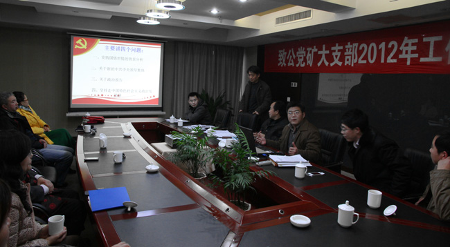 12月24日下午,致公党矿大支部2012年度工作总结会在文昌校区学术交流中心2400会议室召开。党委统战部李来成部长,致公党徐州市委主委汪云甲,办公室主任张允龙应邀出席会议。
