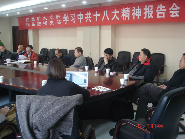 12月5日下午,民革矿大支部、民革鼓楼支部在办公楼B401联合举办了学习十八大精神专题报告会。民革徐州市委组宣部长蒋国振,统战部办公室主任王虎出席了本次活动。两个支部20余名党员参加了学习。活动邀请党委统战部李来成部长做专题报告,报告会由支部主委华钢主持。