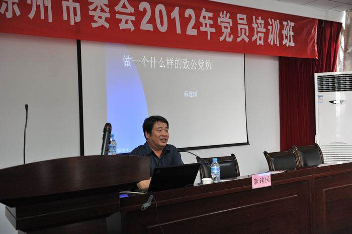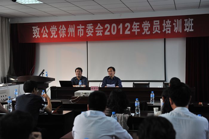 10月14日,致公党江苏省委主委麻建国率队赴徐州调研,期间特地在“致公党徐州市委2012年党员培训班”上了一堂生动精彩的“党课”。致公党江苏省委副主委吴晓蓓、秘书长米其智参加调研并听取了讲座。致公党徐州市委主委汪云甲、矿大支部主委任子晖及40余名党员参加了培训。