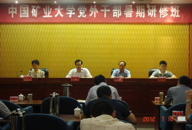 校党委副书记王建平作开班动员,他说这次办班得到了江苏省委统战部、徐州市委统战部大力支持,他首先代表中国矿业大学党委对省、市委统战部对学校统战工作的大力支持表示感谢!王建平副书记指出我校党委历来高度重视党外代表人士的理论武装工作,今年是党的十八大召开的大喜之年,在今年的3月,中共中央专门召开会议,下发了《中共中央关于加强新形势下党外代表人士队伍建设的意见》,这是建国以来第一次以中共中央名义制定的关于党外代表人士队伍建设的纲领性文件,具有里程碑意义。今年也是各民主党派基层组织的换届年,一批党外年轻同志走上了我校民主党派基层组织的领导岗位,所以本次办班,学校党委非常重视。王建平副书记对学员提出三点要求:一是珍惜机会,加强新形势下党的统战理论学习;二是用科学理论武装头脑,不断提高统战政策理论水平;三是学习与实践考察紧密结合,通过学习提高认识水平,通过考察升华思想境界。最后,王建平副书记强调,通过本次的学习研讨,了解党在新世纪新阶段统一战线的新论断、新思想、新举措,武装头脑,关键是要落实在行动当中,落实在学校“十二五”发展规划中,为和谐校园建设,为早日实现我校多科性、研究型的高水平大学奋斗目标做出自己应有的贡献。