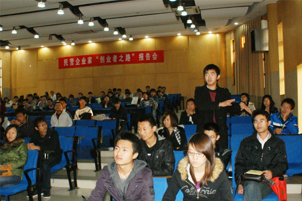 江苏万事达计算机系统集成有限公司董事长王颖在报告中从自己在创业过程中掘到的第一桶金的经历中,向同学们解析了“登高而招,臂非加长也而见者远;顺风而呼,声非加疾也而闻着彰”的内涵,告诫同学们在创业的过程中一定要善于发挥自己的专长,善假于物,脱颖而出,避免无谓的损失。同时,她也从自己创业的历程的曲折和成功中向同学们阐明,创业的过程既是赢利的过程,更是承担社会责任的过程,既是竞争的过程,更是与客户双赢的过程。她将自己在创业中的感悟与现场的同学一起分享:诚实比聪明重要,勤奋比捷径重要。