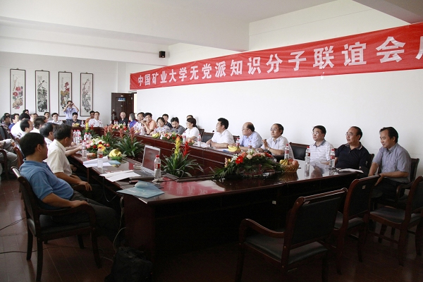 会议分两个阶段进行。下午四点,在办公楼B401召开了预备会。联谊会22名理事参加会议。会议宣读了《关于成立我校无党派知识分子联谊会的通知》以及无党派知识分子联谊会理事名单,审议并通过了中国矿业大学无党派知识分子联谊会章程,选举产生了第一届中国矿业大学无党派知识分子联谊会机构,钱建生当选会长,魏晓平、谭国俊、范炳恒、刘韶方、何亚群当选副会长,张农当选秘书长。