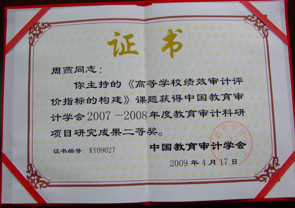 我校侨联副主席、致公党支部委员周燕主持的《高等学校绩效审计评价指标的构建》课题荣获二等奖。这次是我校第二次获得此类奖项。