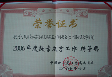 大会对2006年度在参政议政工作中作出突出贡献的集体和个人进行了表彰。致公党矿大支部主委汪云甲教授获信息工作先进个人称号,我校致公党支部获全省提案发言工作“特等奖”。
