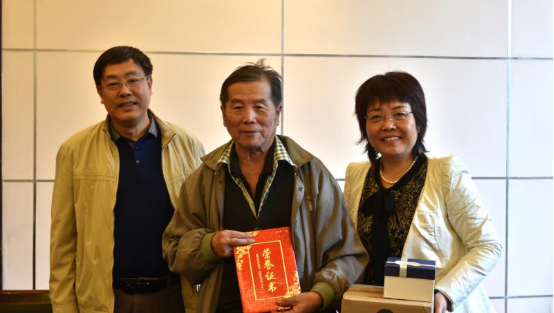 本次活动分为两个环节,第一个环节:话重阳之情。“九九重阳节,浓浓九三情”,2018年受九三社市委表彰的入社30年社员共27人,其中参加本次表彰会的社员8人,在大家的声声祝福中,隋主委和刘部长分别为老社员们颁发了荣誉证书和精美礼品。