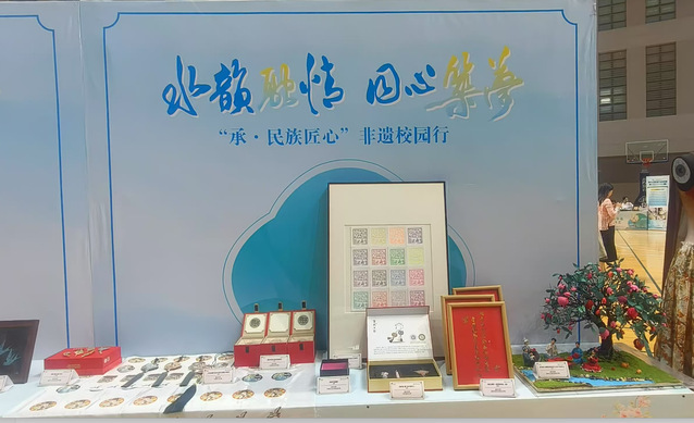 2025年5月7日,江苏省第三届“铸牢中华民族共同体意识·高校在行动”开幕式在扬州大学举办。开幕式上,“承·民族匠心”非遗校园行活动成为亮点。我校报送的《东坡遗韵 运河共情:主题徐州香包》徐州香包作品和《汉韵新彩:大运河畔的民族文化凝粹》拓印作品入选此次非遗校园行现场展示。