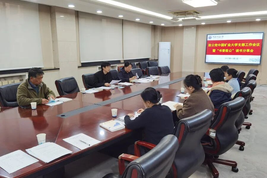 12月3日,致公党中国矿业大学支部在矿大南湖校区行政楼会议室召开支部工作会议暨“书香致公”读书分享会,支部成员齐聚一堂,深入学习中共二十届四中全会精神、推进年度工作并开展读书交流。学校党委统战部副部长翟文艳应邀参加,会议由矿大支部主委朴春德主持。