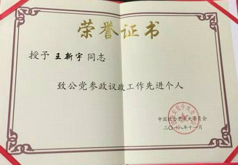 王新宇教授作为致公党党员,积极参政议政,建言献策。近年来,他先后承担致公党省委、致公党市委、徐州市政协调研课题10余项。其中,课题成果《加强农村信用社稳健性促金融体系安全发展》成为江苏省政协重点办理提案;《关于金融监管体制改革的提案》成为全国政协重点办理提案。