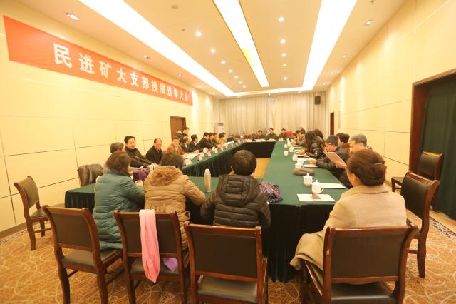 民进矿大支部换届选举大会分两个阶段进行。民进矿大支部委员孟丽主持第一阶段的选举。按照会议议程,民进矿大支部第七届委员会主委李增华教授作了《践行社会主义核心价值体观 建设民进先进基层支部》的工作报告。会议按照选举办法进行票选,经过投票选举,选举产生了民进矿大支部新八届领导班子。第八届民进矿大支部领导班子由九人组成,当选民进矿大支部第八届委员会的成员为(按姓氏笔画排序):王文顺、王洪欣、尹文萱、庄全超、安英莉、宋彦、茅献彪、孟丽、胡爱华。
