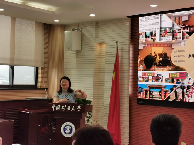 中国矿业大学建筑与设计学院硕士生导师孙亚云副教授做了题为“以劳育美、以美育人——江苏省优秀中华传统文化传承基地建设”的成果汇报,分享了基地以徐州香包为载体进行的传统文化的传承和创新成果。