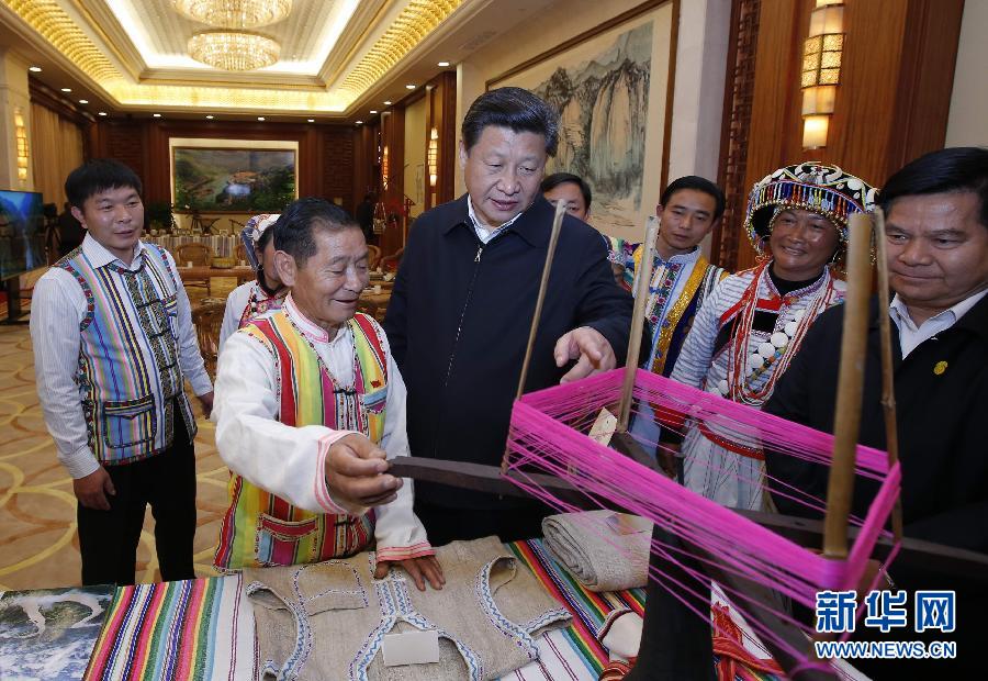 2015年1月20日,习近平向独龙族群众代表询问民族特有生产工具使用情况