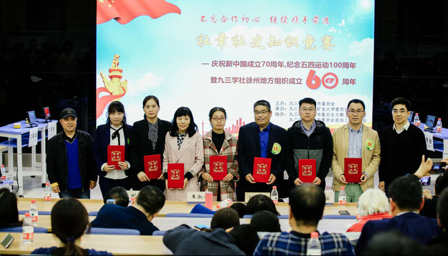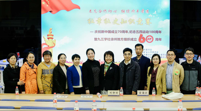 2019年4月29日,为庆祝新中国成立70周年,纪念五四运动100周年暨九三学社徐州地方组织成立60周年,由九三学社徐州市委员会主办,九三学社中国矿业大学委员会承办的九三学社社章社史知识竞赛决赛在我校南湖校区同心讲堂举办。九三学社徐州市委员会副主委葛琳同志,王淑梅同志,宫海滨同志及近百名九三学社社员参与了本次活动,我校党委统战部部长刘静丽同志则作为特邀嘉宾出席了本次竞赛。